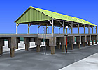 PHOTOS: August 17, 2011 - observed severe deterioration of major beams in the pier roof structure Major damage on south side. Bottom chord beam ends on three trusses are badly broken and look dangerous; T3, T4 and T5 from earlier drawing. Completely rotted or missing post-to-post beams between T8 and T7 (first on left approaching from shore) and T4 and T3. Only one set of stainless diagonal braces remain in place, out of four.